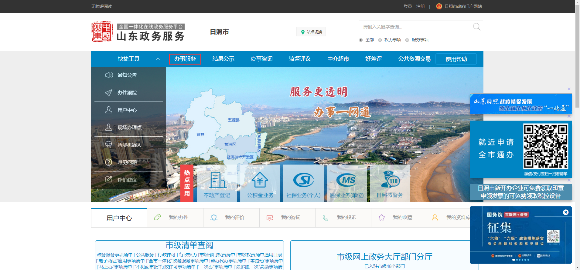 1.在山东政务服务网(日照站)点击“办事服务”模块。